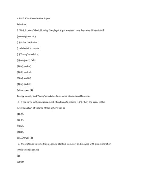 Download Aipmt 2008 Examination Paper Solutions PDF